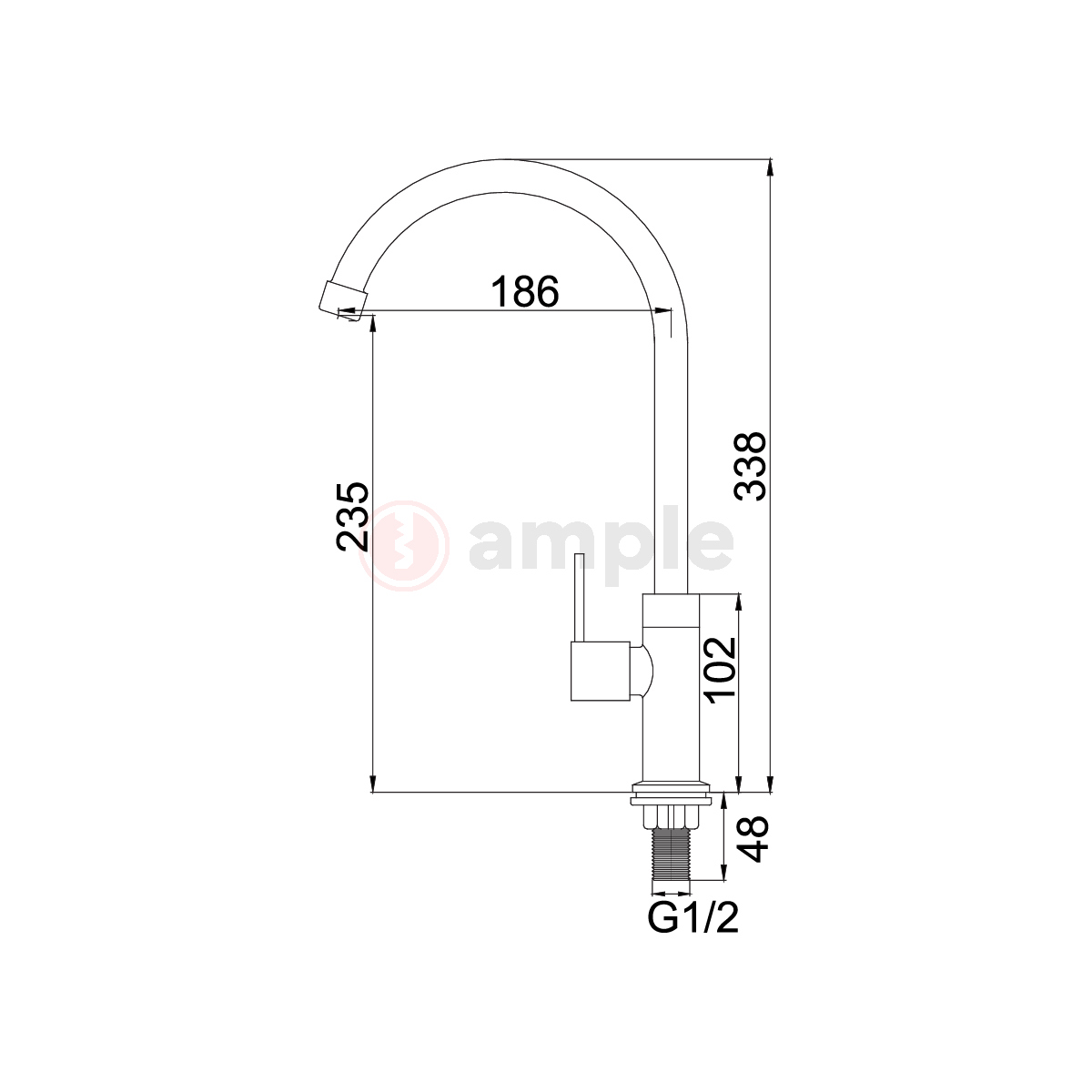 - Size (mm)H338 x L186 x G1/2